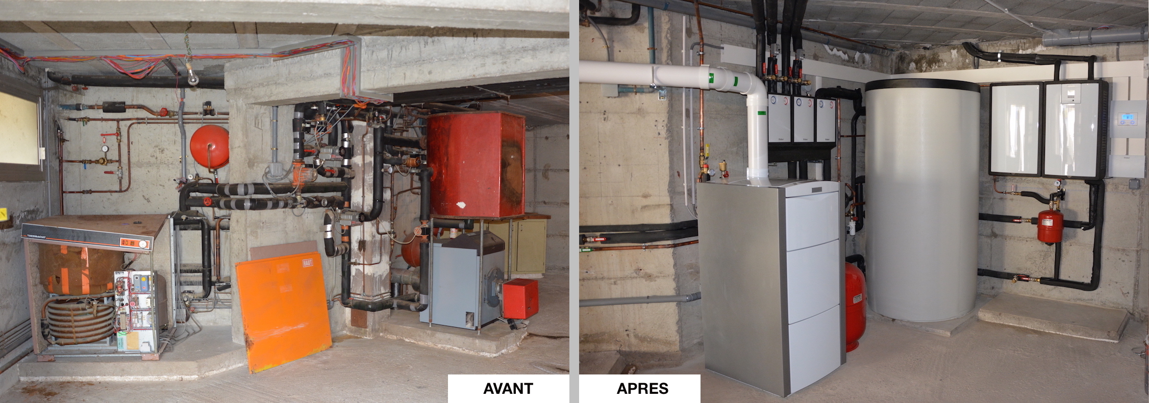 Le chauffage et la production d'eau chaude sanitaire de l'installation existante étaient assurés par une chaudière fioul traditionnelle en relève d'un pompe à chaleur.