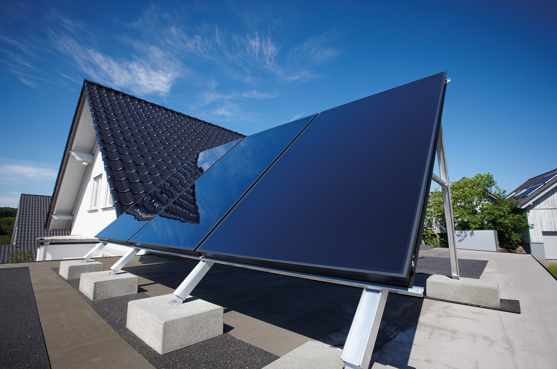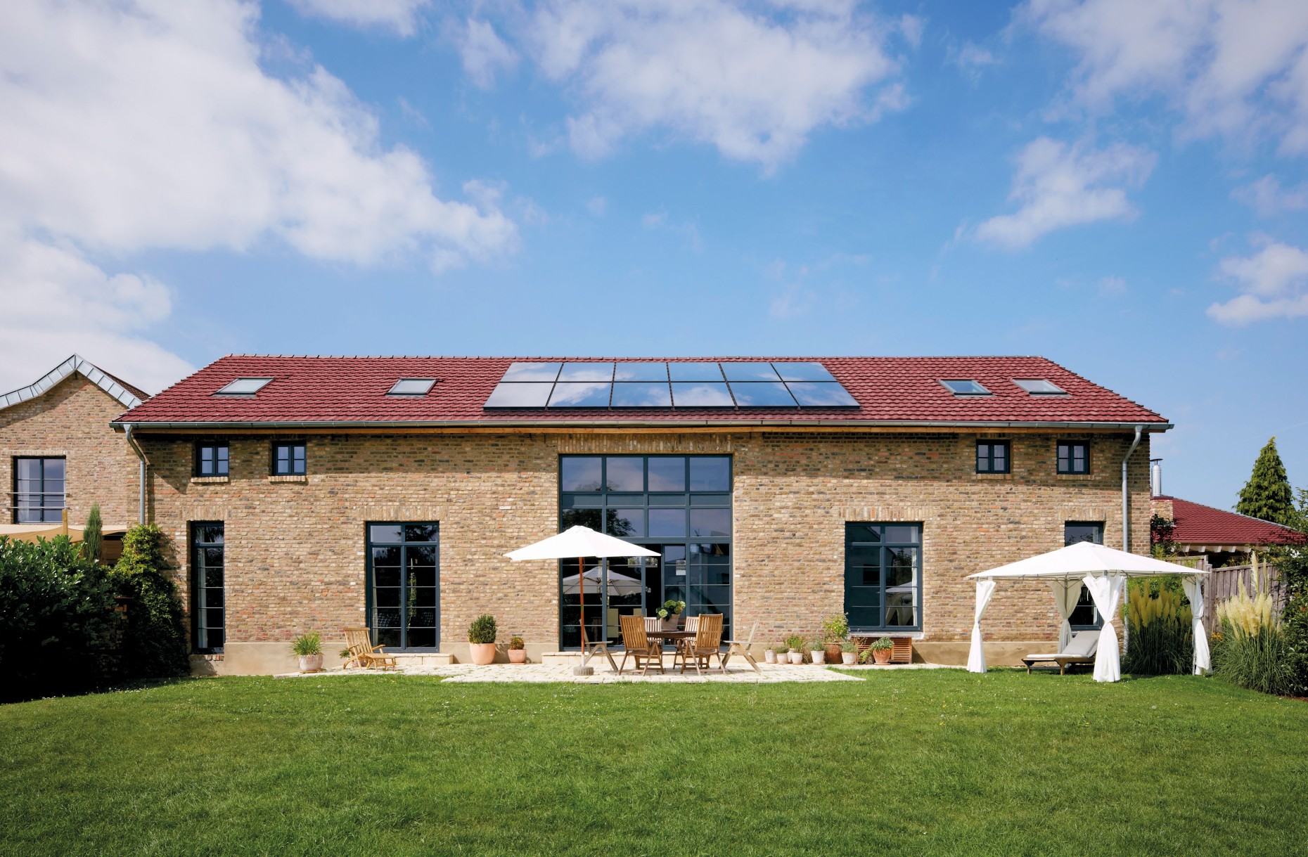 Le choix du propriétaire s'est porté sur une production de chaleur solaire aussi bien pour le chauffage que pour l'eau chaude sanitaire. Une chaudière condensation gaz assure le complément d'énergie. Le système solaire combiné auroTHERM 700 de Vaillant assure un confort élevé. Les 12 m² de capteurs solaires fonctionnent de manière autovidangeable : Grâce à la technique de vidange automatique, le fluide caloporteur réchauffé dans le capteur retourne automatiquement dans le réservoir intégré en cas de non-utilisation ou de conditions défavorables. Il n’existe, par conséquent, aucun risque de surchauffe en été, ni de gel en hiver.